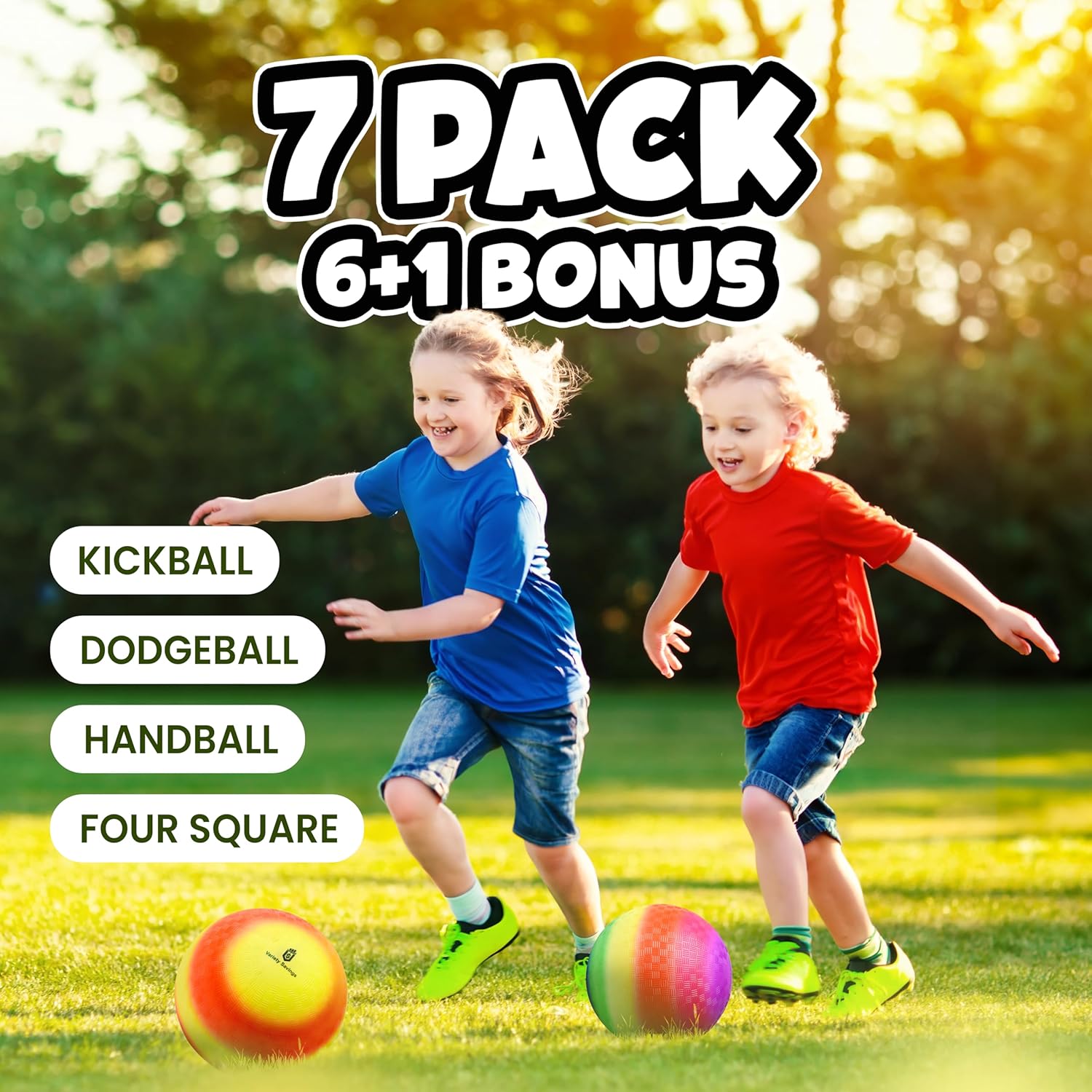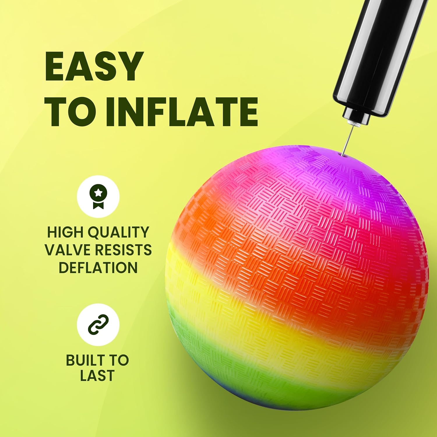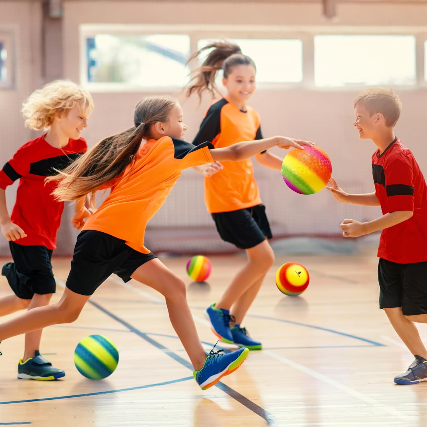 ★ [MULTIPURPOSE] – Kids playground ball – Our rainbow-colored balls can be used for kickball, dodgeball, handball, foursquare, or any other innovative game you can think of. You can also take them to the beach, pool, or use them as rainbow playground ball exercises for seniors and adults.