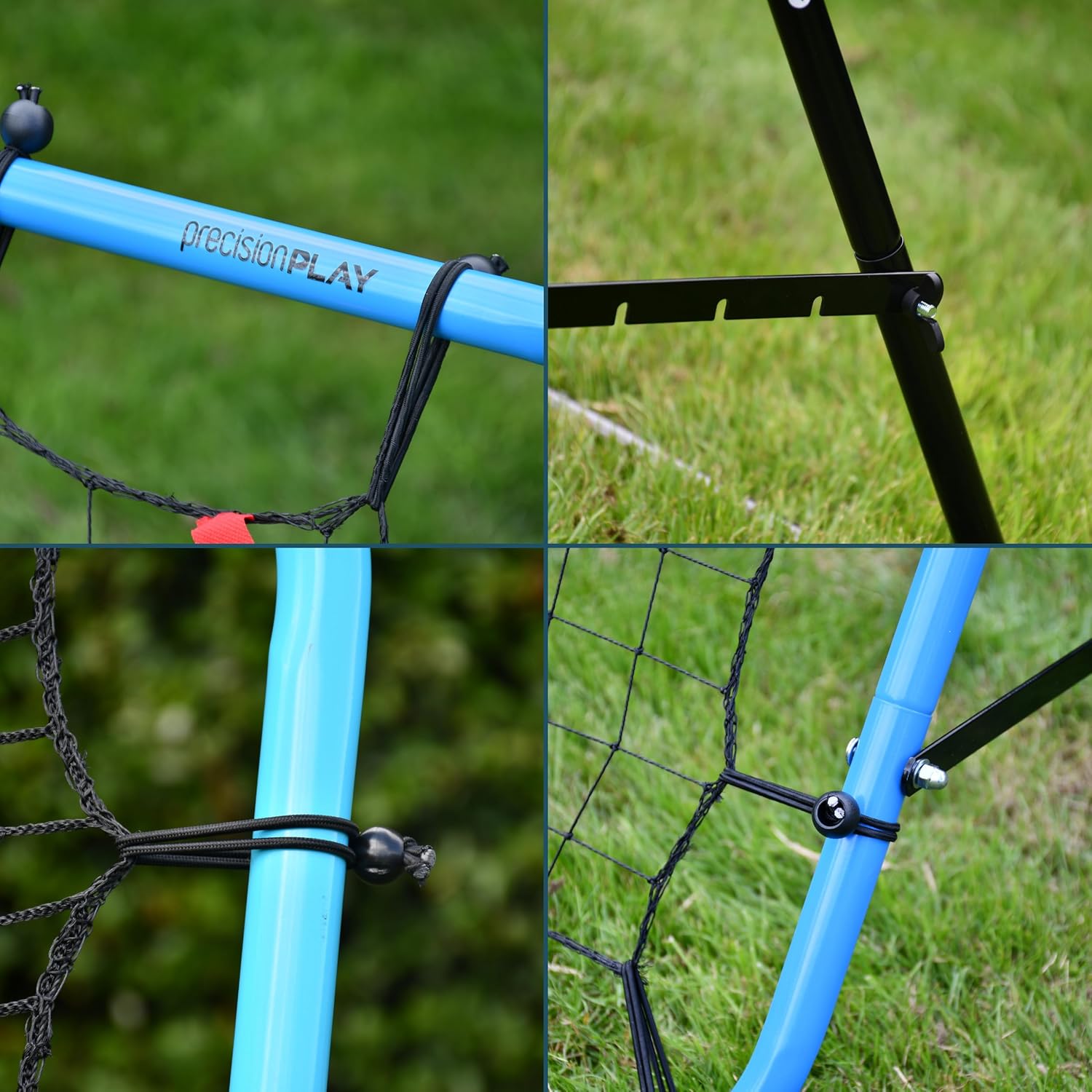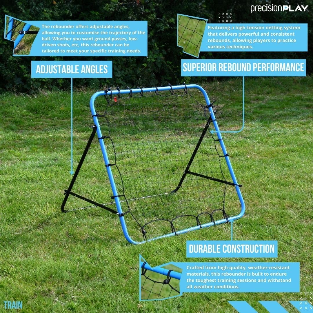 PrecisionPLAY Adjustable Rebounder – an innovative tool designed to enhance your skills and transform your practice sessions. This rebounder is not just a piece of equipment; it’s a catalyst for mastering the art of football, adaptable to a myriad of sports including Gaelic Football, Tennis, Handball, and Hockey. Exceptional Rebound Quality: Featuring high-tension netting, our rebounder offers powerful and consistent rebounds, mimicking real-match scenarios. It’s the perfect companion for practising various techniques such as passing accuracy, shooting prowess, and fine-tuning your ball control. Each rebound is a step towards perfecting your skills. Tailor-Made Training Experience: With adjustable angles, this rebounder adapts to your training needs. Whether you’re working on ground passes, aerial lobs, or direct shots, it can be customised to suit your specific requirements, catering to players of all skill levels and ages. Robust and Weather-Resistant: Durability is at the heart of the PrecisionPLAY Adjustable Rebounder. Crafted from premium, weather-resistant materials and supported by a strong 25mm powder-coated steel frame, it stands resilient against the toughest of training sessions and diverse weather conditions. Portable and User-Friendly: Measuring 100cm x 100cm, this rebounder is both portable and easy to store. It includes ground pegs and a detailed instruction manual for effortless setup and disassembly. This feature ensures that your garden can quickly transform into a training ground and back to a family space with ease. A Versatile Sporting Solution: The PrecisionPLAY Adjustable Rebounder is more than just a football accessory. It’s an essential tool for sports enthusiasts across various disciplines, offering endless hours of productive and enjoyable practice. It’s the perfect way to engage in active sports while developing essential skills.